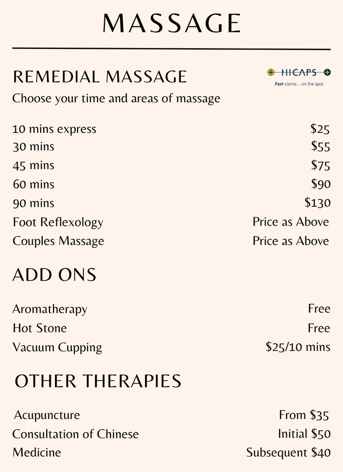 “I received a neck, shoulder and back massage and can highly recommend them. The therapist was knowledgeable to identify and work on the different pressure points. The clinic is neat and tidy. Will certainly visit them again.”